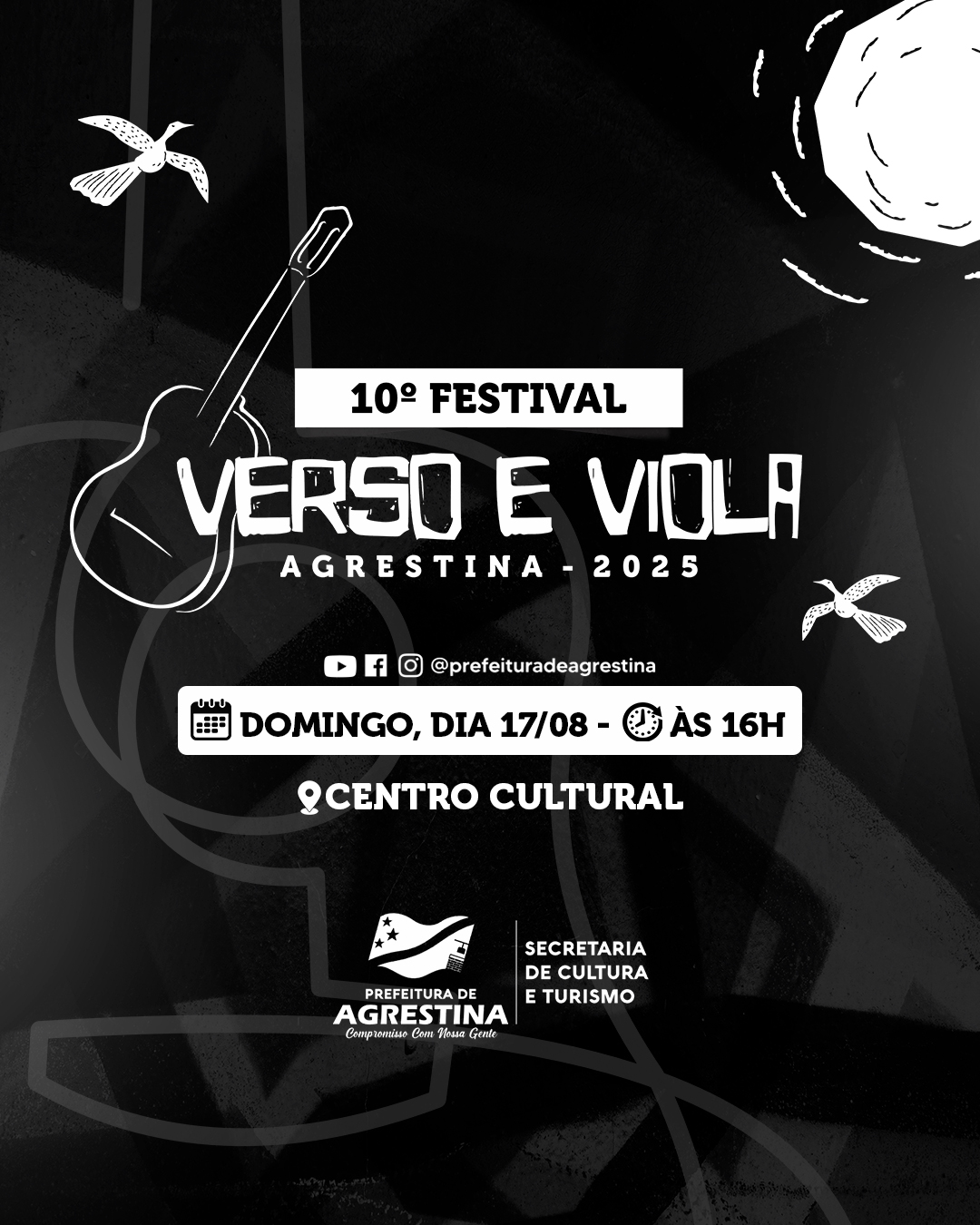 NotíciasAgrestina se prepara para receber o 10º Festival Verso e Viola Notícias / Agrestina Prefeitura / agosto 8, 2025
