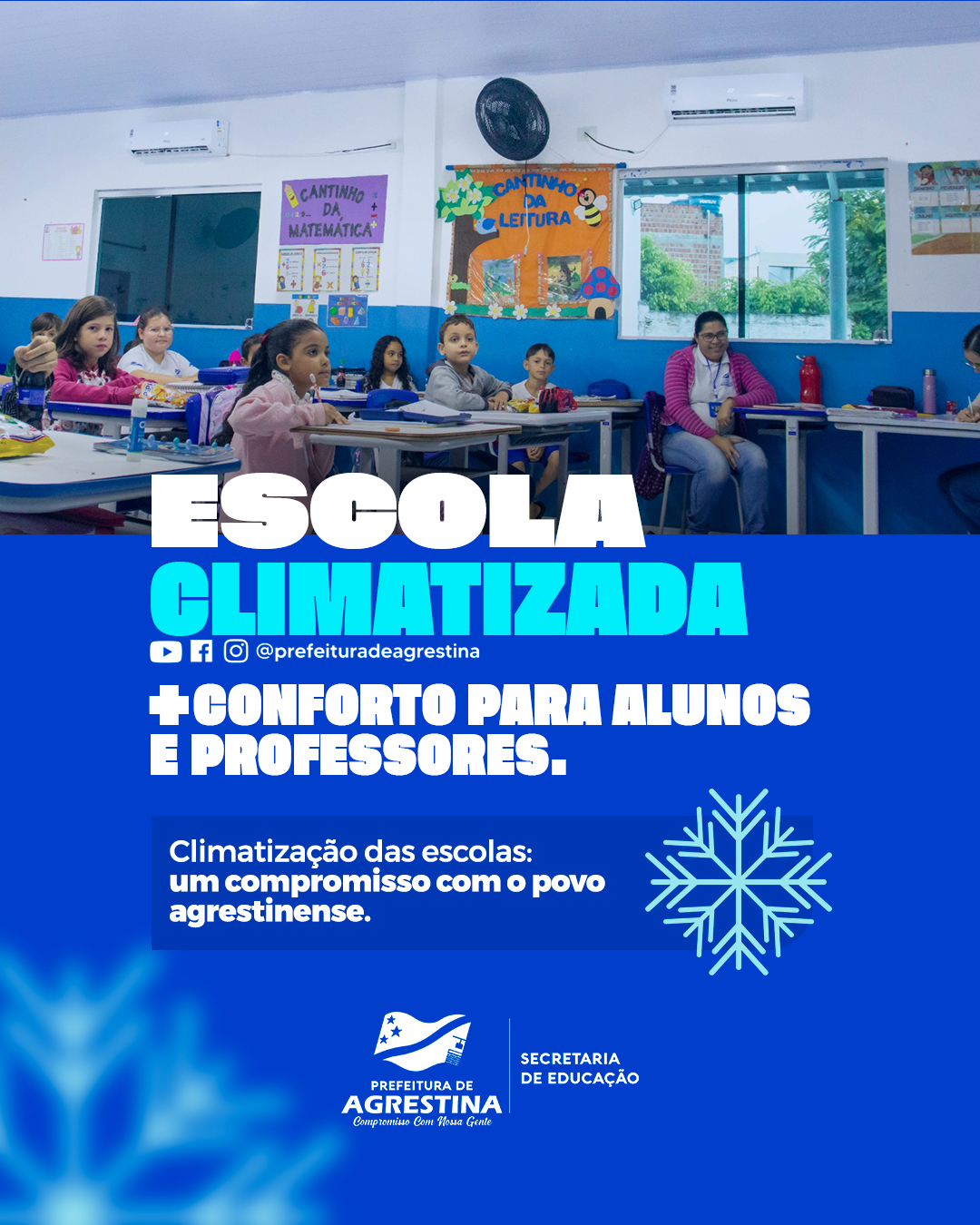 NotíciasEscola Leonila de Souza Ribeiro ganha sistema de climatização e proporciona mais conforto para alunos e professores Notícias / Agrestina Prefeitura / agosto 8, 2025