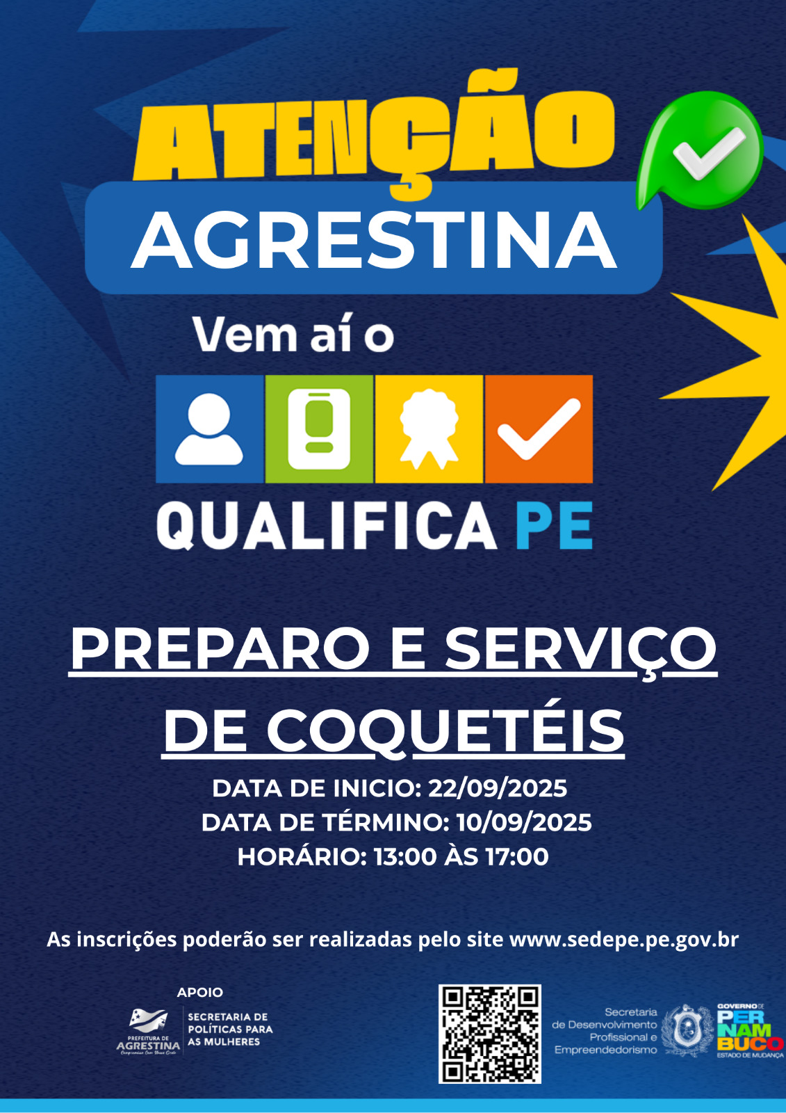 Destaques Mulher NotíciasAgrestina recebe curso de Preparo e Serviço de Coquetéis através do programa Qualifica PE Destaques, Mulher, Notícias / Agrestina Prefeitura / setembro 2, 2025