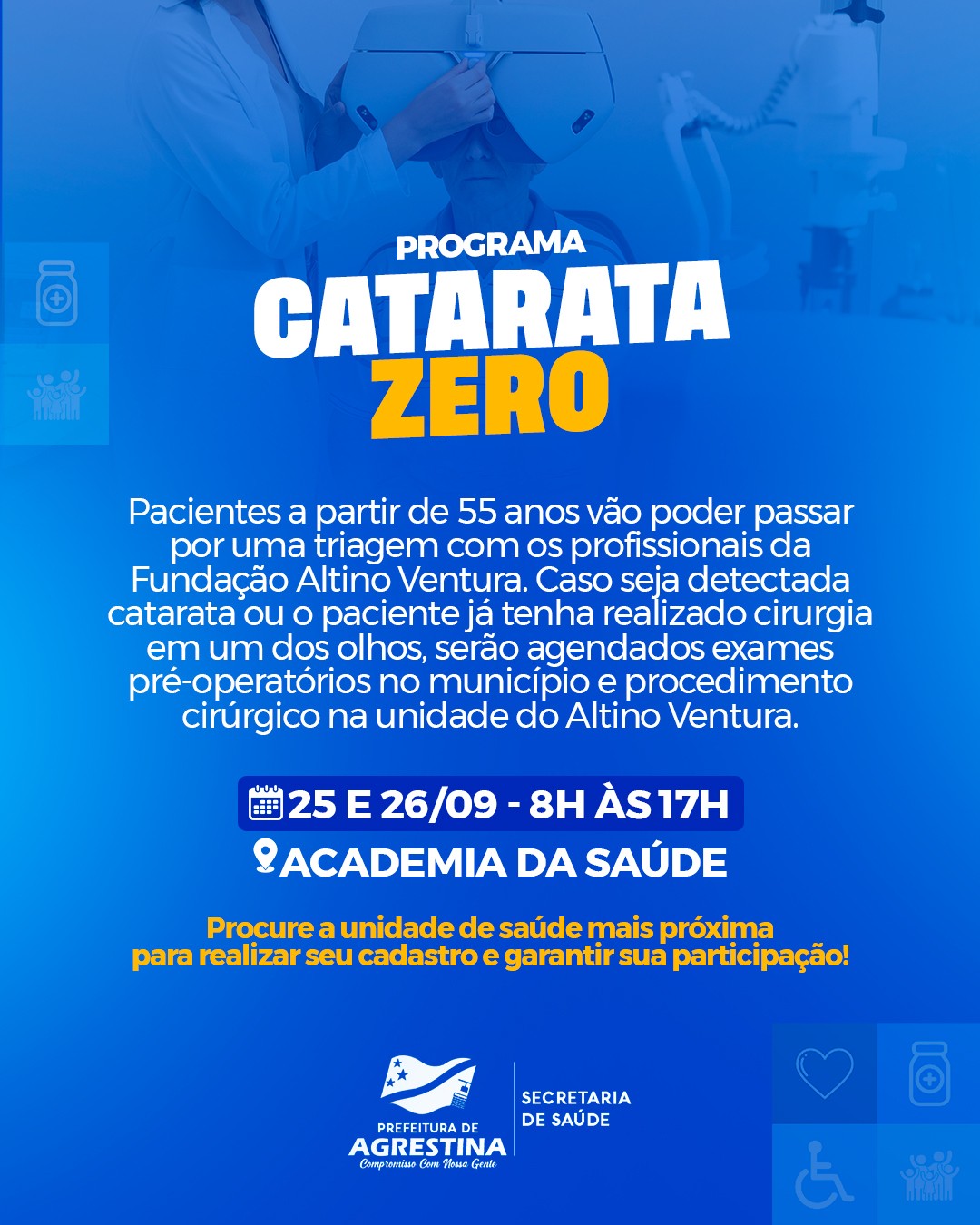 SaúdeAgrestina recebe Programa Catarata Zero da Fundação Altino Ventura Saúde / Agrestina Prefeitura / setembro 17, 2025 / Academia da Saúde, Fundação Altino Ventura, Programa Catarata Zero, Secretaria de Saúde