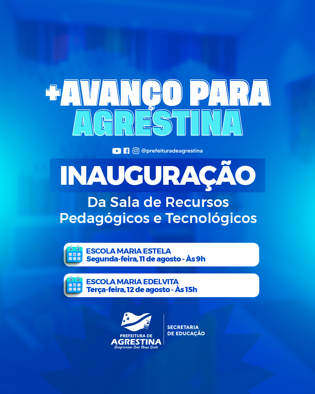 EducaçãoAgrestina avança na educação com a inauguração de Salas de Recursos Pedagógicos e Tecnológicos Educação / Agrestina Prefeitura / agosto 7, 2025 / Agrestina, Educação, Salas de Recursos pedagógicos e Tecnológicos, Secretaria de Educação, Tecnologia Escolar
