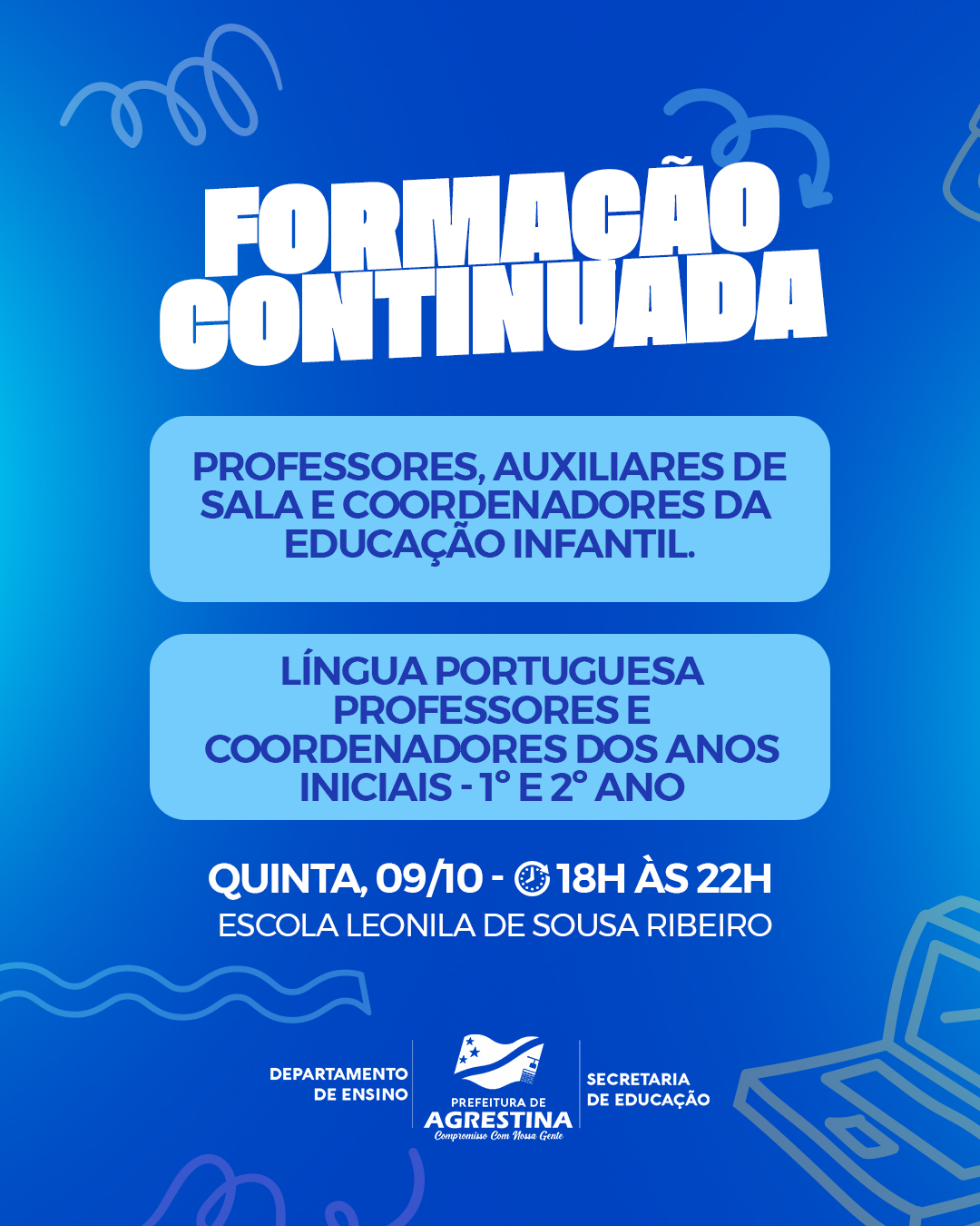 Educação NotíciasPrefeitura de Agrestina promove formações continuadas para professores da rede municipal durante o mês de outubro Educação, Notícias / Agrestina Prefeitura / outubro 30, 2025
